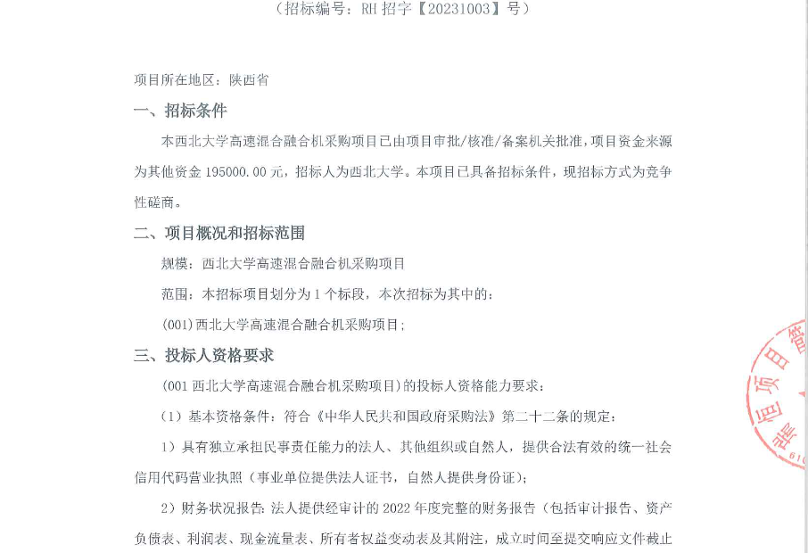 9001cc金沙高速混合融合机采购项目竞争性磋商公告 作者: 编辑:采购与招标办公室 时间:2023-10-18 原公告链接:http://bulletin.sntba.com/biddingBulletin/2023-10-17/735312.html